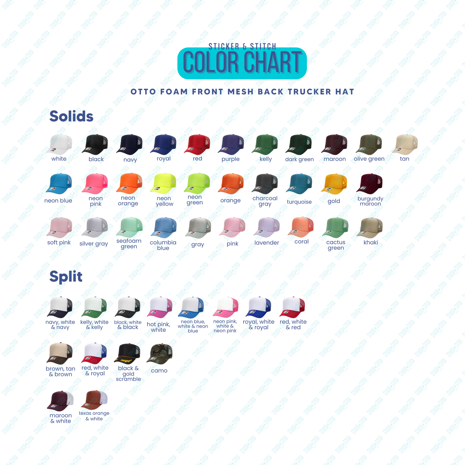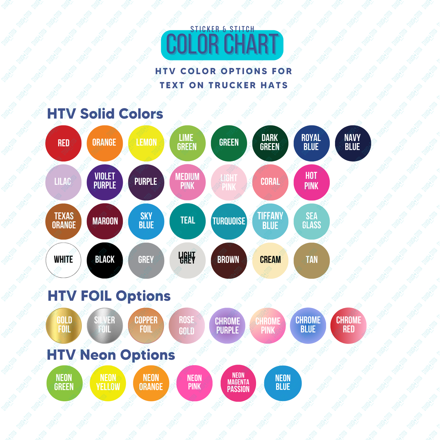 These are the most popular colors for Tall Text and Foil Truckers. More available.
